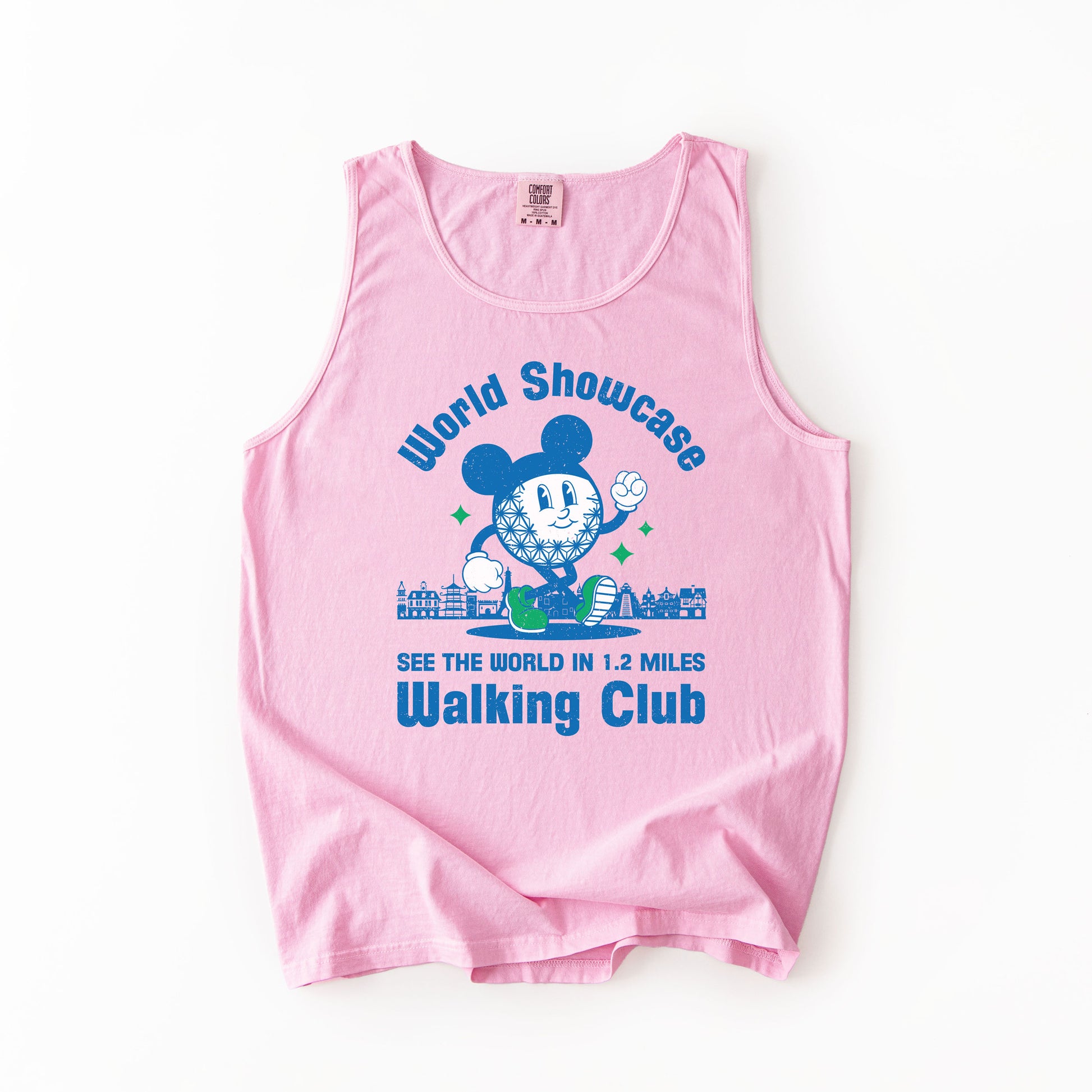 Hydrate, stretch, and lace up—because the World Showcase Walking Club tank is made for those sunny Disney days when steps matter and margaritas motivate. With a throwback-style design and breezy fit, it’s your go-to for looping the lagoon in style.